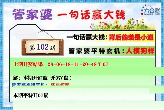 | 101期: ⑥肖 | 猴兔牛虎狗龙 | 鼠07中 |