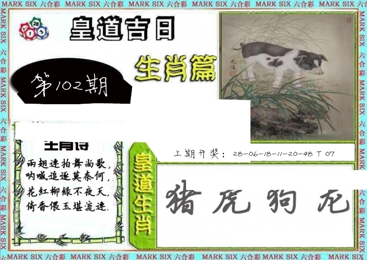 | 102期: ⑥肖 | 猴猪牛狗虎羊 | 兔28中 |