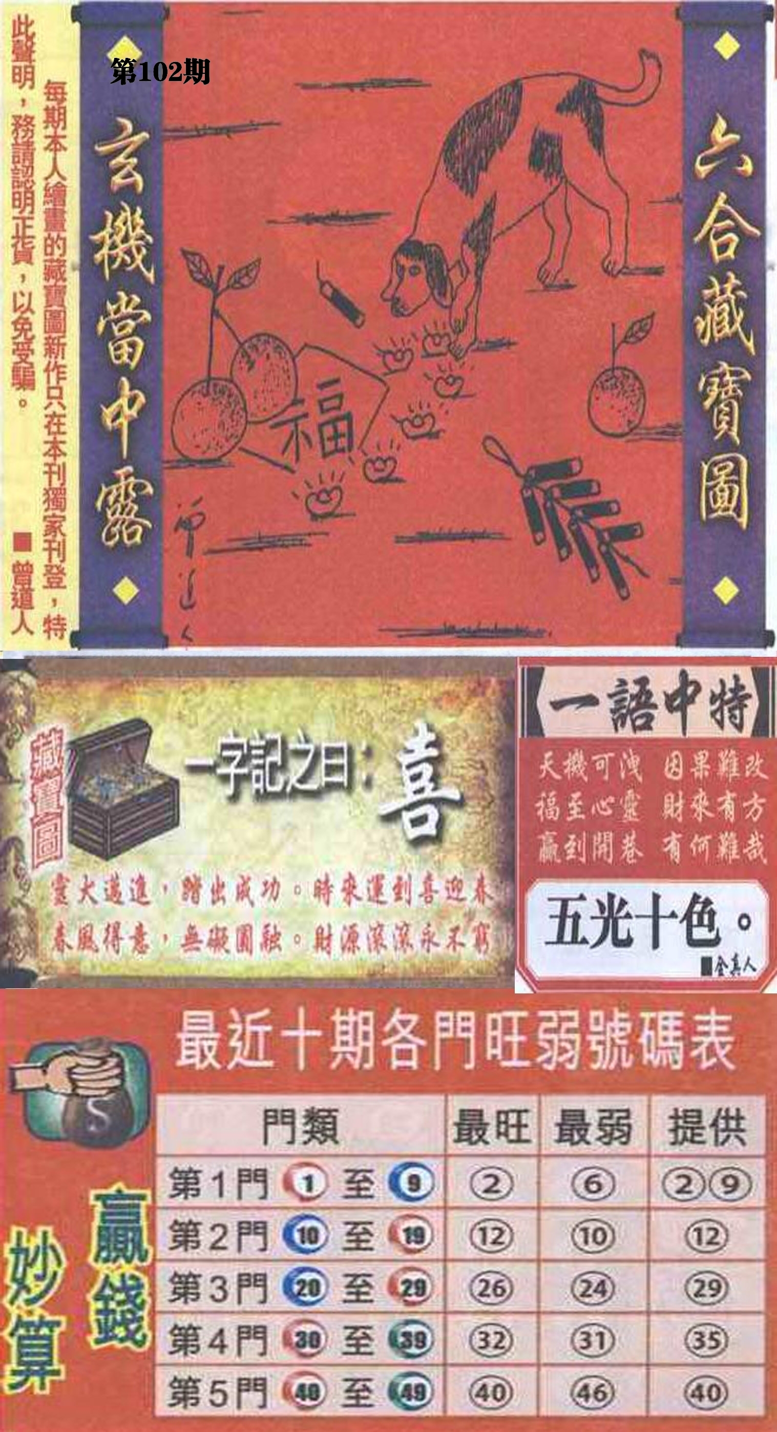 | 102期: ⑤肖 | 猴猪牛狗虎 | ????中 |