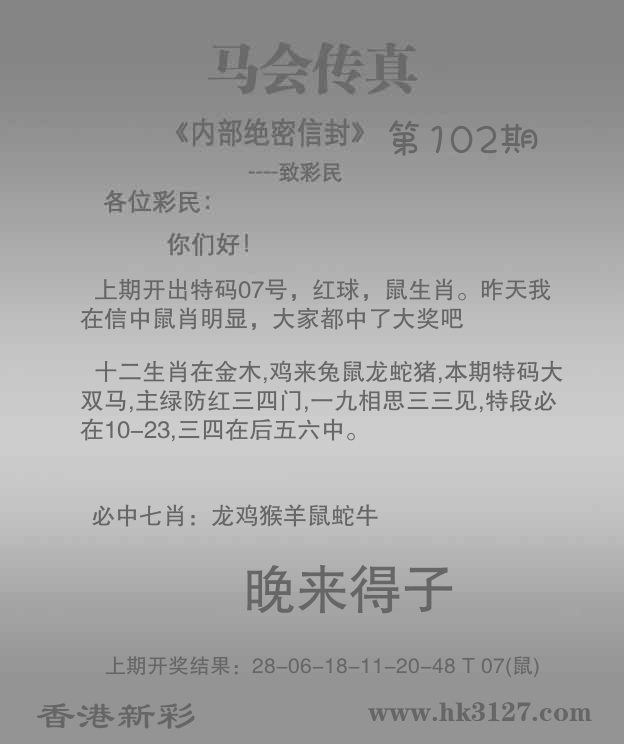 | 102期:公式四肖 | 102期:公式三头 | 102期:公式杀肖 |