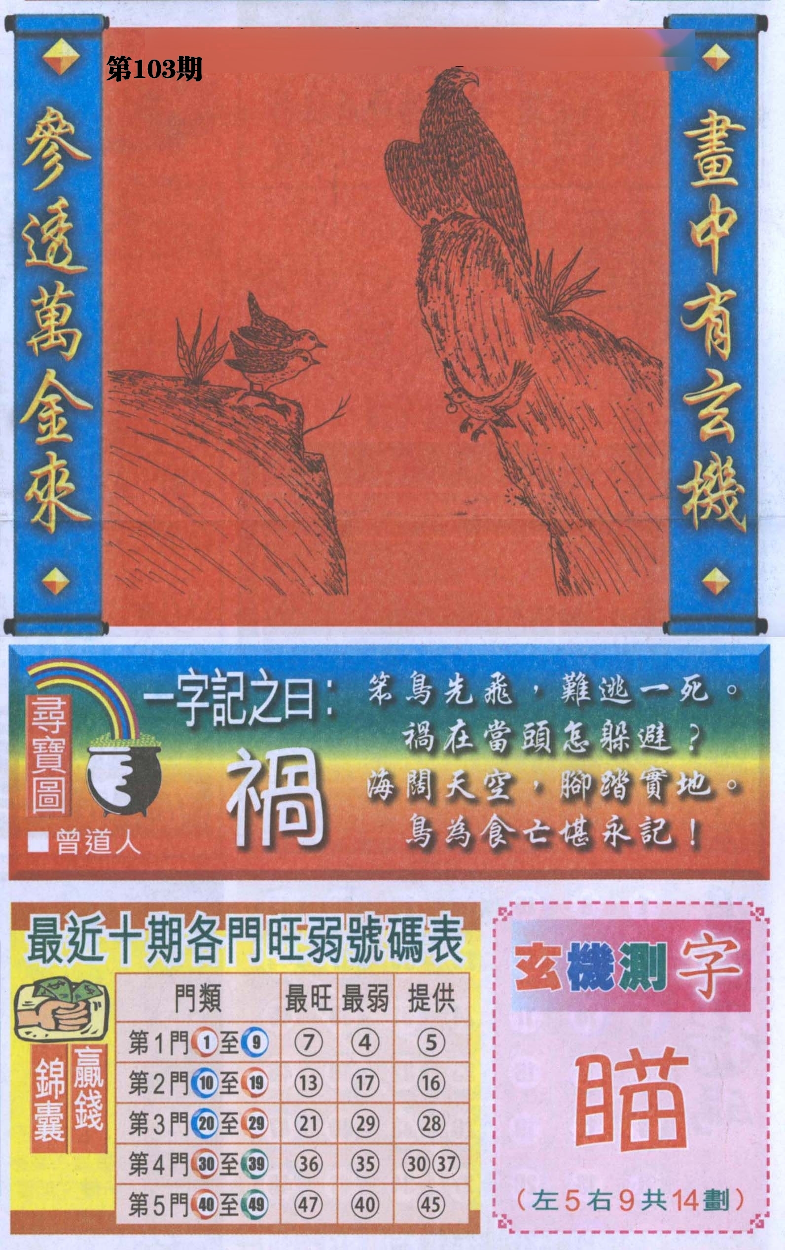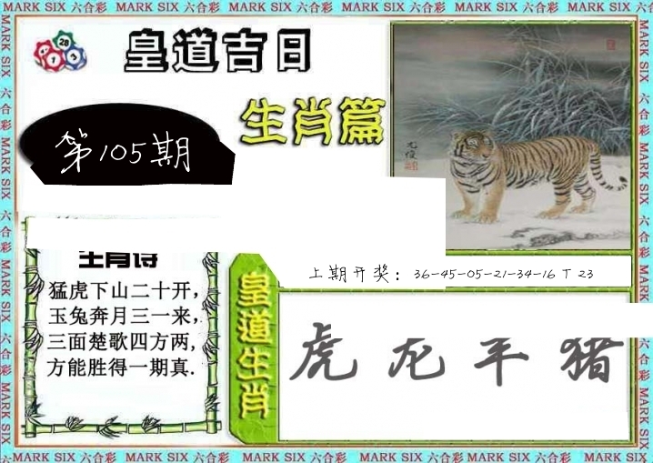 | 073期: ⑨肖 | 马牛羊狗蛇龙猴兔虎 | 虎41中 |