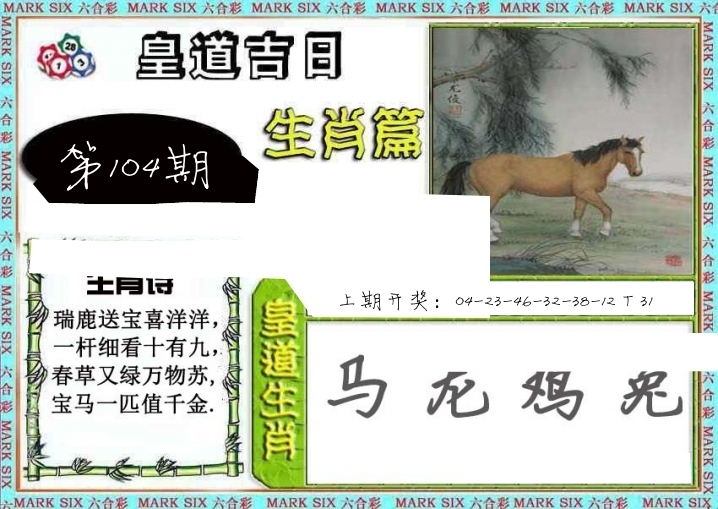 | 073期: ⑥肖 | 马牛羊狗蛇龙 | 虎41中 |