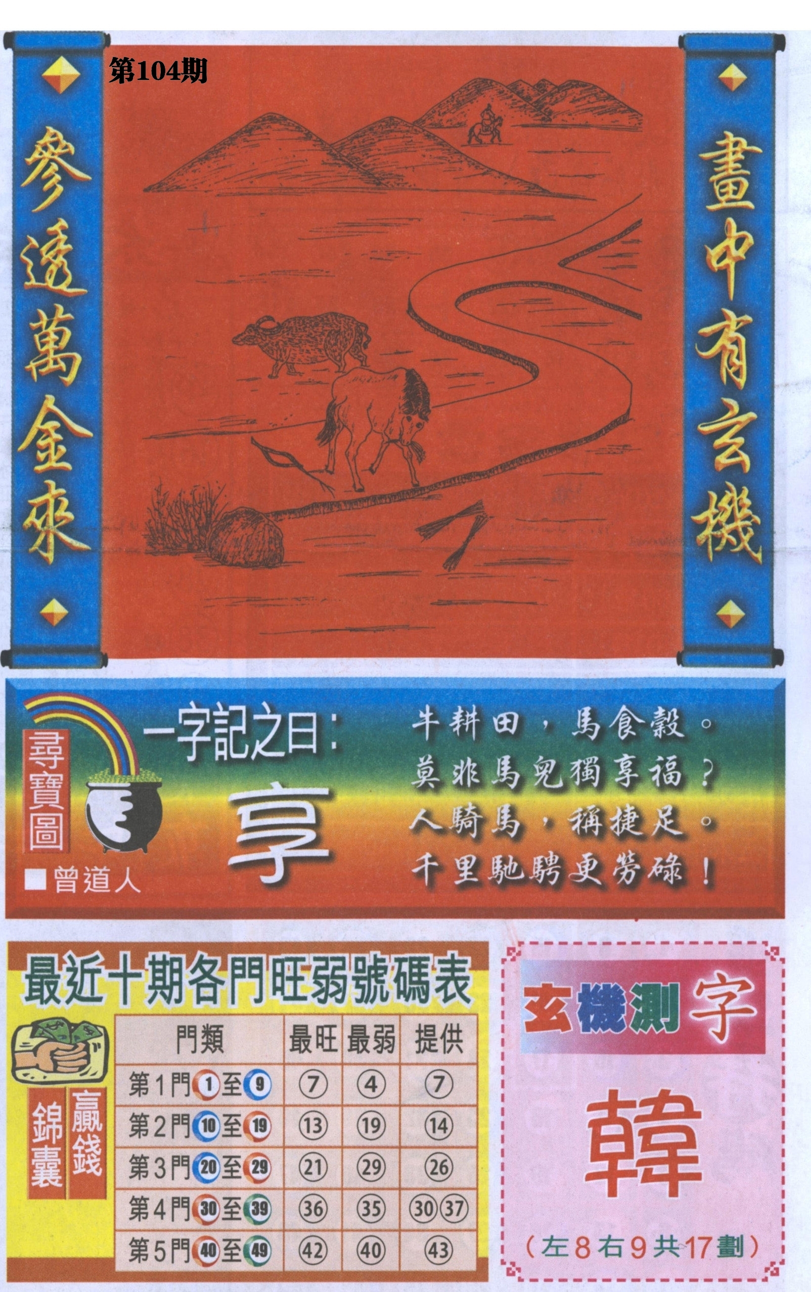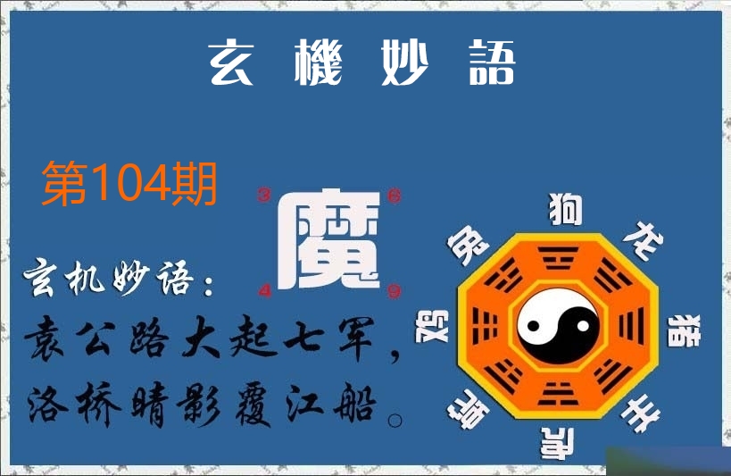 | 104期: ⑨肖 | 鸡猪虎蛇羊兔鼠狗马 | 猴23中 |