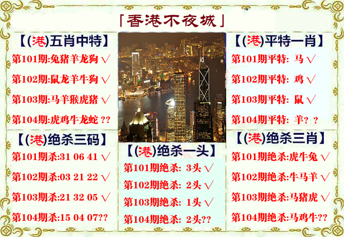 | 104期: ⑤肖 | 鸡猪虎蛇羊 | 猴23中 |