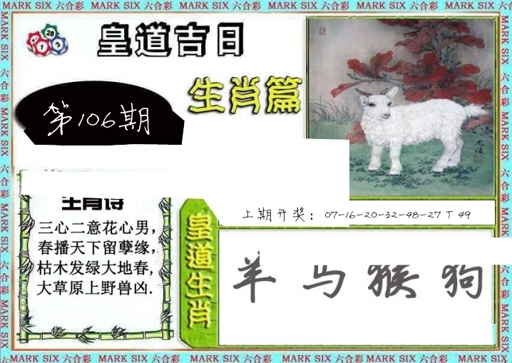 | 071期: ⑥肖 | 羊猴牛猪鸡马 | 羊48中 |