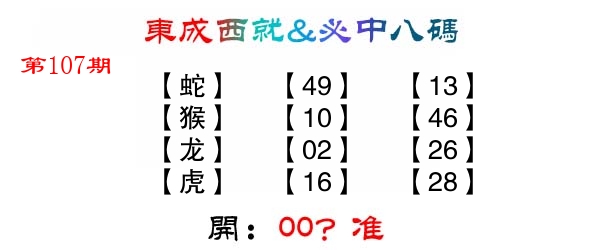 | 074期: ⑧肖 | 鸡狗虎鼠羊猪蛇兔 | 虎29中 |
