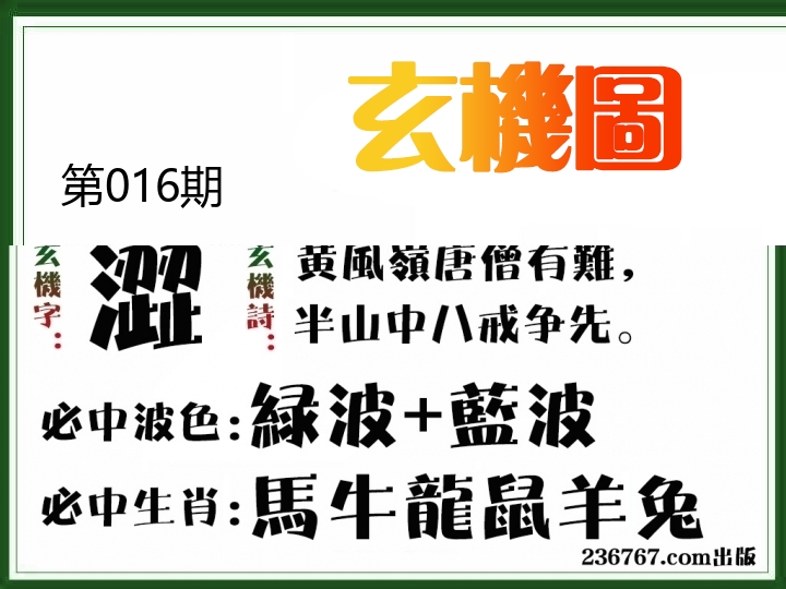 | 016期: ⑨肖 | 龙鸡猴牛兔猪虎羊马 | ????中 |