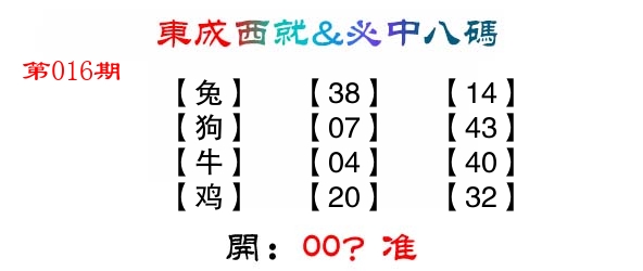 | 016期: ⑧肖 | 龙鸡猴牛兔猪虎羊 | ????中 |