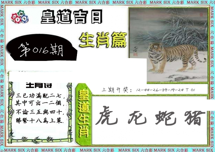 | 001期 | 虎 | 7尾 | 红单 | 30-39 | 16虎 |