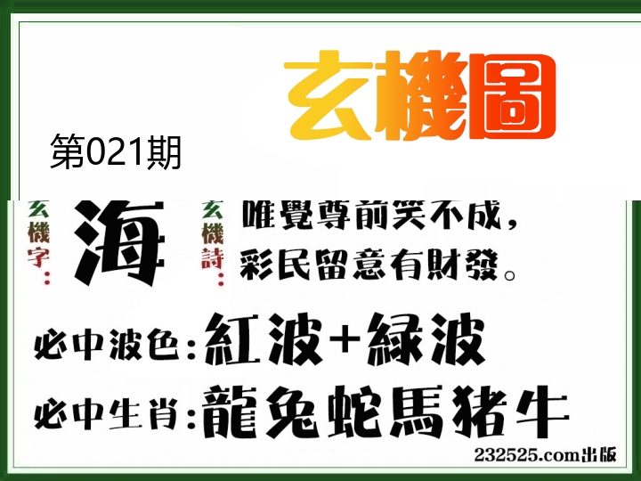 | 021期: ⑨肖 | 兔虎羊牛鼠蛇马龙猴 | ????中 |