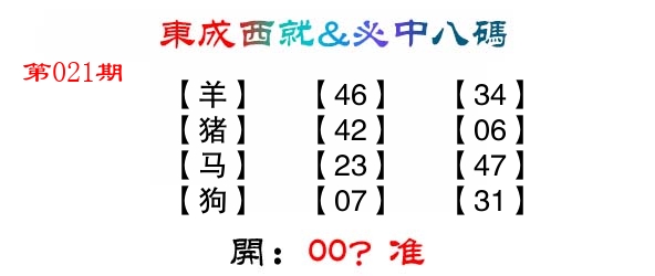 | 021期: ⑧肖 | 兔虎羊牛鼠蛇马龙 | ????中 |