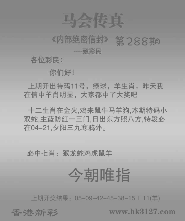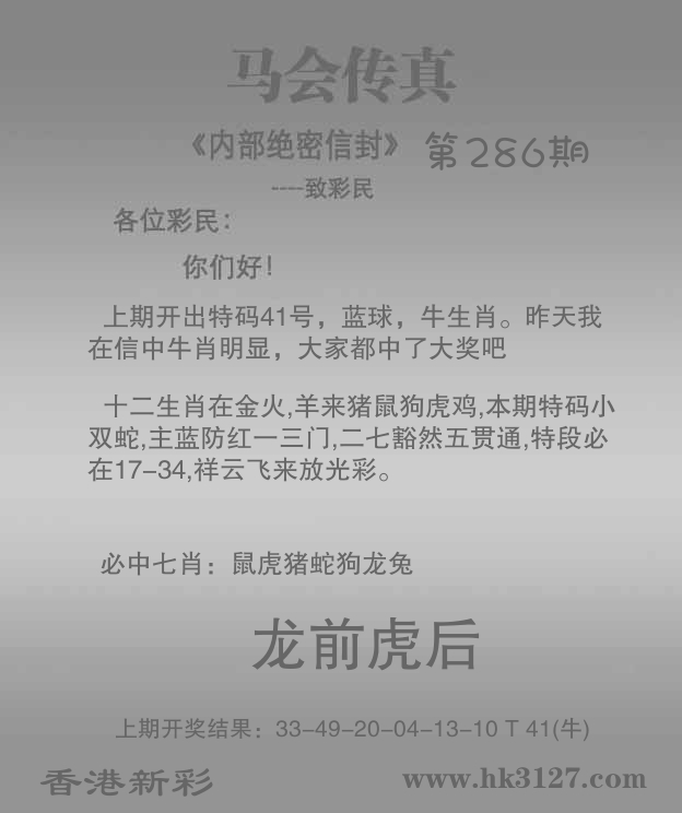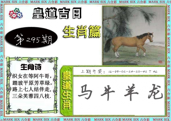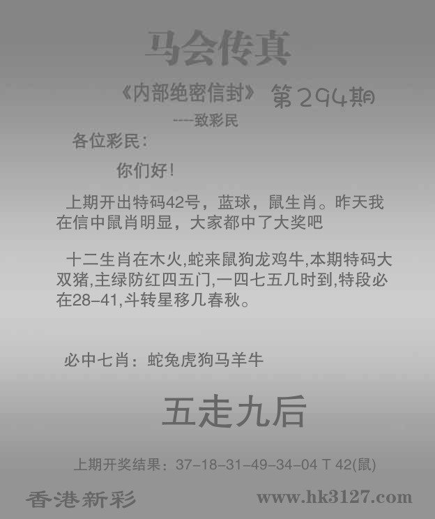 294期: ⑦肖 | 鸡狗羊兔牛蛇马 | 猴46中 |