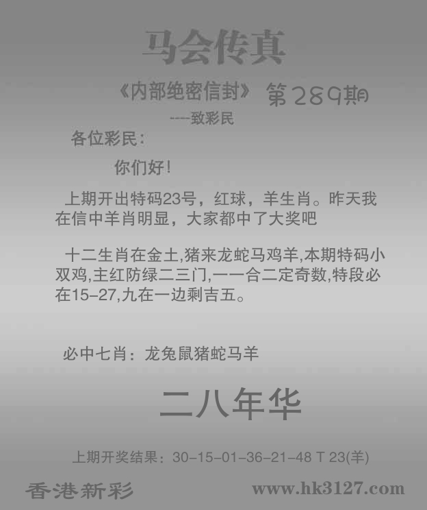 288期: ⑥肖 | 狗猴蛇虎马猪 | 羊23中 |