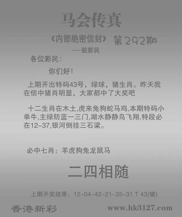 291期: ④肖 | 鸡牛狗鼠 | 猪43中 |