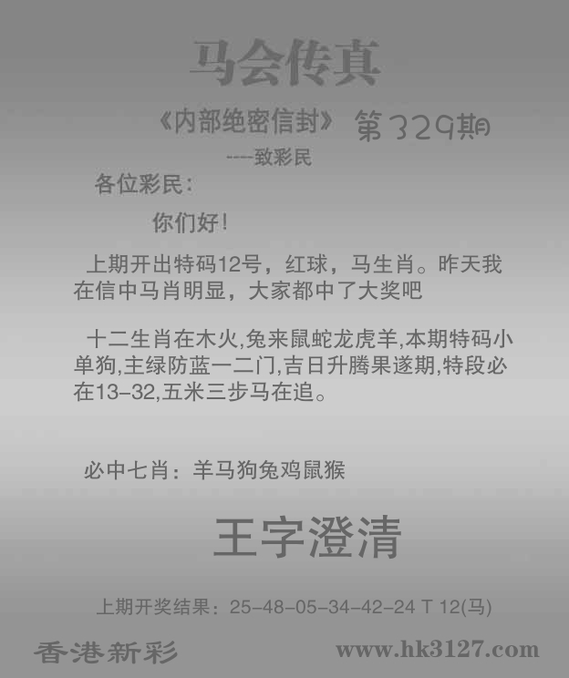 | 329期:公式七肖 | 329期:公式前后 | 329期:公式大小 |