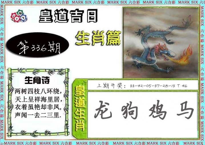 | 336期: ⑥肖 | 龙虎蛇猴狗猪 | ????中 |