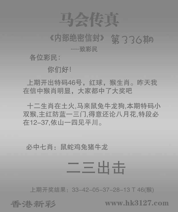 | 336期:公式四肖 | 336期:公式三头 | 336期:公式杀肖 |