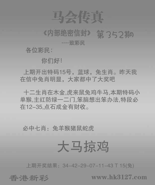 | 352期: ⑥肖 | 猴虎狗马牛鸡 | 蛇37中 |