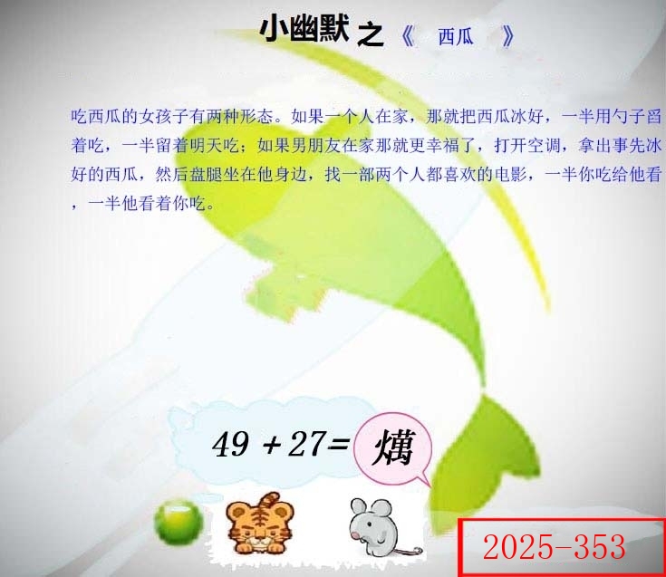 | 354期: ⑥肖 | 马狗鼠猴虎牛 | 蛇25中 |