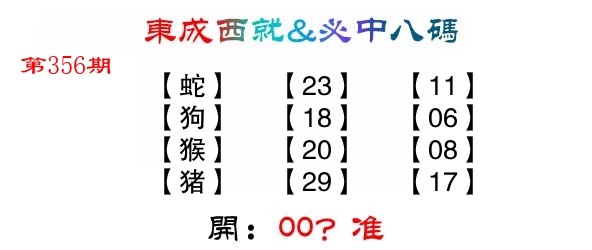 | 356期: ⑧肖 | 猪虎鼠鸡狗马蛇羊 | ????中 |