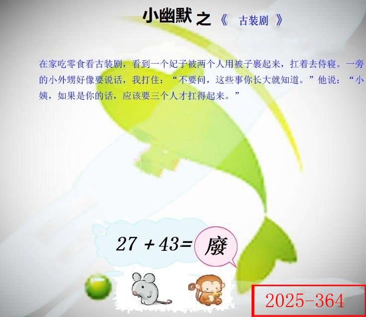 | 364期: ⑧肖 | 鼠兔虎羊狗蛇鸡马 | 龙38中 |