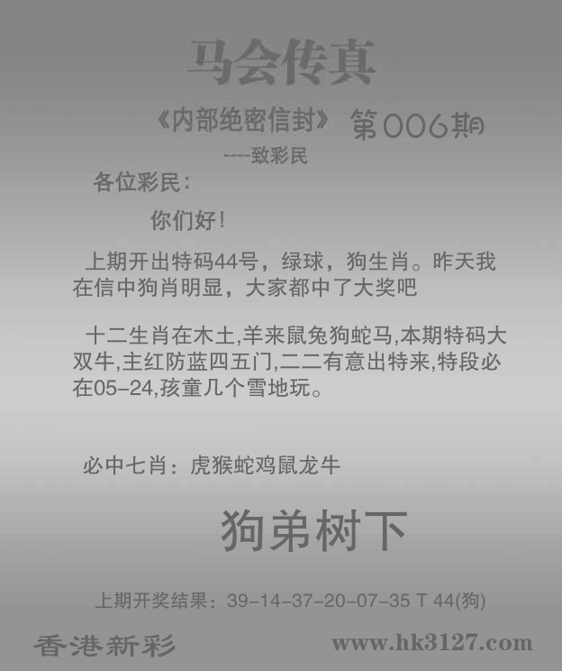 | 006期: ⑥肖 | 马虎龙羊蛇狗 | 狗32中 |
