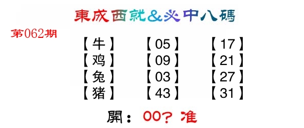 | 062期: ⑧肖 | 兔蛇龙虎鸡鼠牛猪 | ????中 |