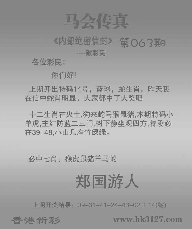 | 063期: ④肖 | 羊虎猪兔 | 鸡46中 |