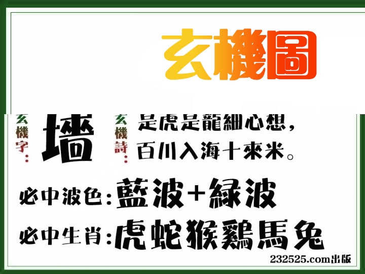 | 057期: ⑨肖 | 蛇狗鼠羊龙兔马虎鸡 | 牛30中 |