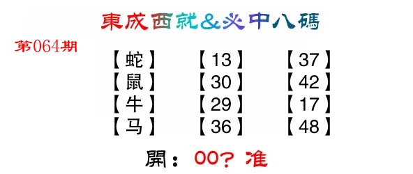 | 064期: ⑧肖 | 兔狗猴龙猪牛蛇羊 | ????中 |
