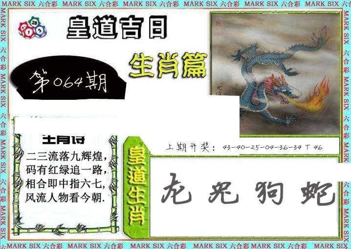 | 064期: ⑥肖 | 兔狗猴龙猪牛 | ????中 |
