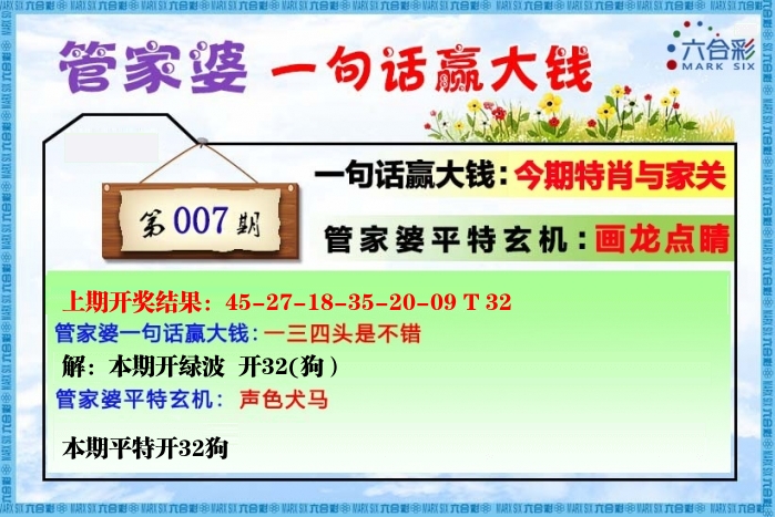| 006期: ⑦肖 | 马虎龙羊蛇狗鼠 | 狗32中 |