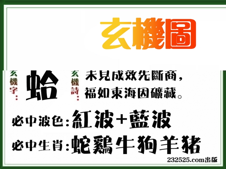 | 012期: ⑨肖 | 蛇狗牛鼠猴羊虎鸡龙 | 羊23中 |