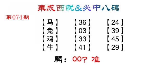 | 008期: ④肖 | 兔猪虎龙 | 牛29中 |