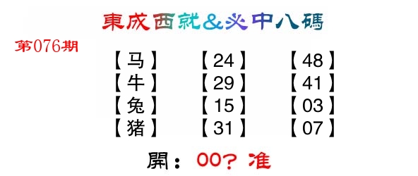 | 076期: ⑧肖 | 牛狗鸡鼠羊虎马兔 | ????中 |