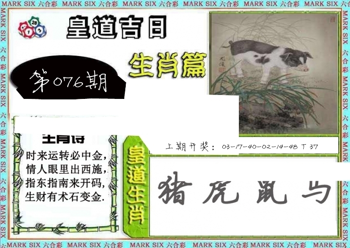 | 076期: ⑥肖 | 牛狗鸡鼠羊虎 | ????中 |