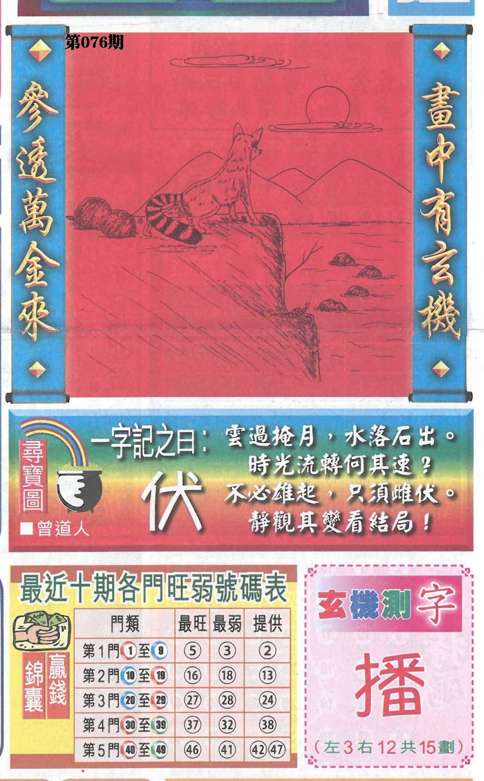 | 076期: ⑤肖 | 牛狗鸡鼠羊 | ????中 |