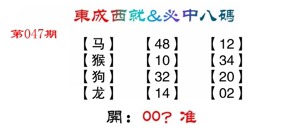 | 047期: ⑧肖 | 鸡猴羊猪牛龙鼠蛇 | ????中 |