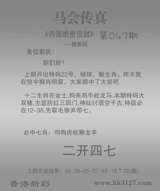 | 047期:公式四肖 | 047期:公式三头 | 047期:公式杀肖 |