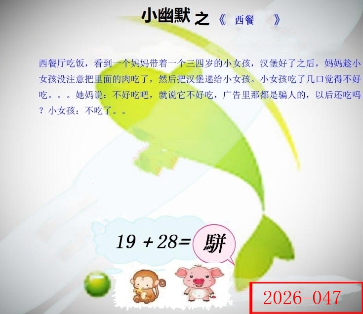 | 047期:公式一肖 | 047期:公式一波 | 047期:公式单双 |