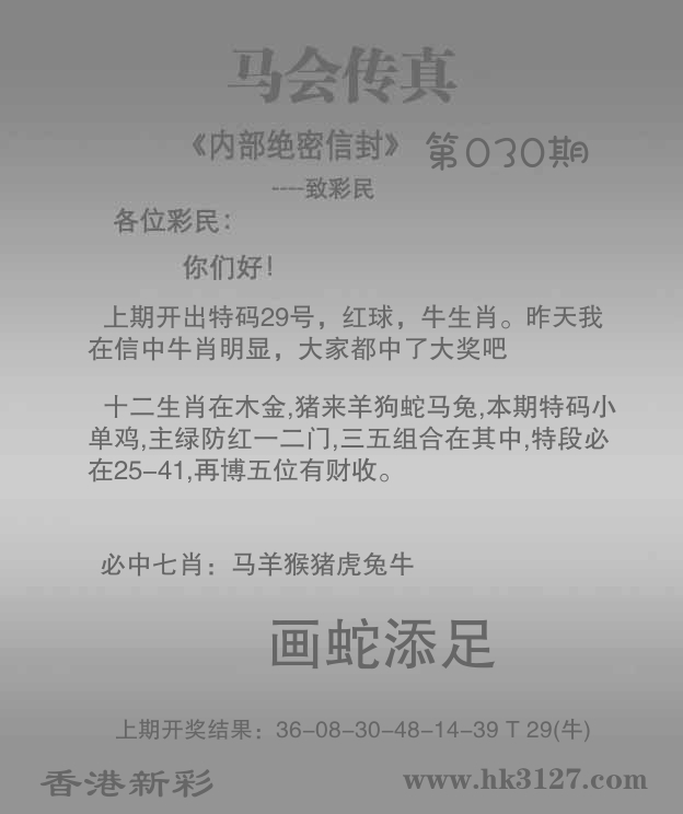 | 030期: ⑧肖 | 马蛇羊兔虎鸡龙猴 | 马24中 |