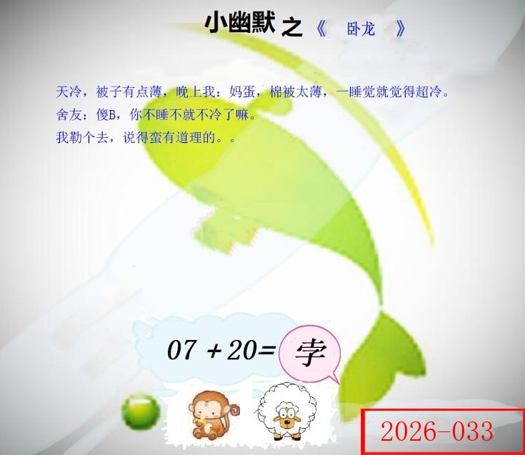 | 033期 | 虎 | 8尾 | 绿双 | 20-29 | 03兔 |