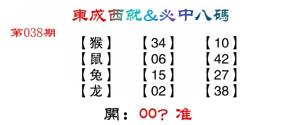 | 038期: ⑧肖 | 牛鸡猴龙狗羊兔猪 | ????中 |